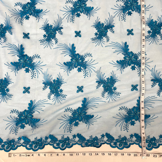 Add elegance and glamour to your couture projects with this Silver Beaded Lace Fabric embroidered on 100% polyester net mesh. Featuring intricate beading, sequins, and floral embroidery, this luxurious lace is perfect for bridal gowns, evening dresses, quinceañeras, and dance costumes. Lightweight yet durable, it drapes beautifully and enhances every design with a refined, handcrafted finish. Available in three stunning colors, each yard provides premium-quality material to create memorable, high-end garments for any special occasion.