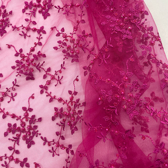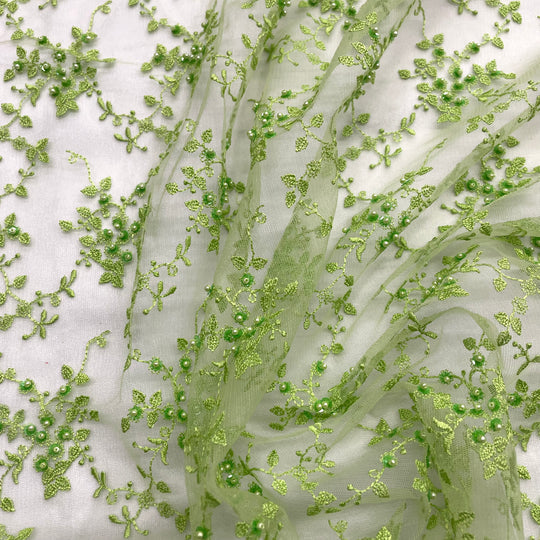 Bring sophistication and glamour to your creations with this Silver Beaded Lace Fabric embroidered on 100% polyester net mesh. Perfect for bridal gowns, evening dresses, quinceañera outfits, and dance costumes, this luxurious fabric features delicate hand-embroidered beading that adds sparkle and elegance. Soft and lightweight, it drapes beautifully for a comfortable yet high-end finish. Available in five stunning colors, each yard provides premium-quality material for creating memorable, show-stopping garments for any special occasion.