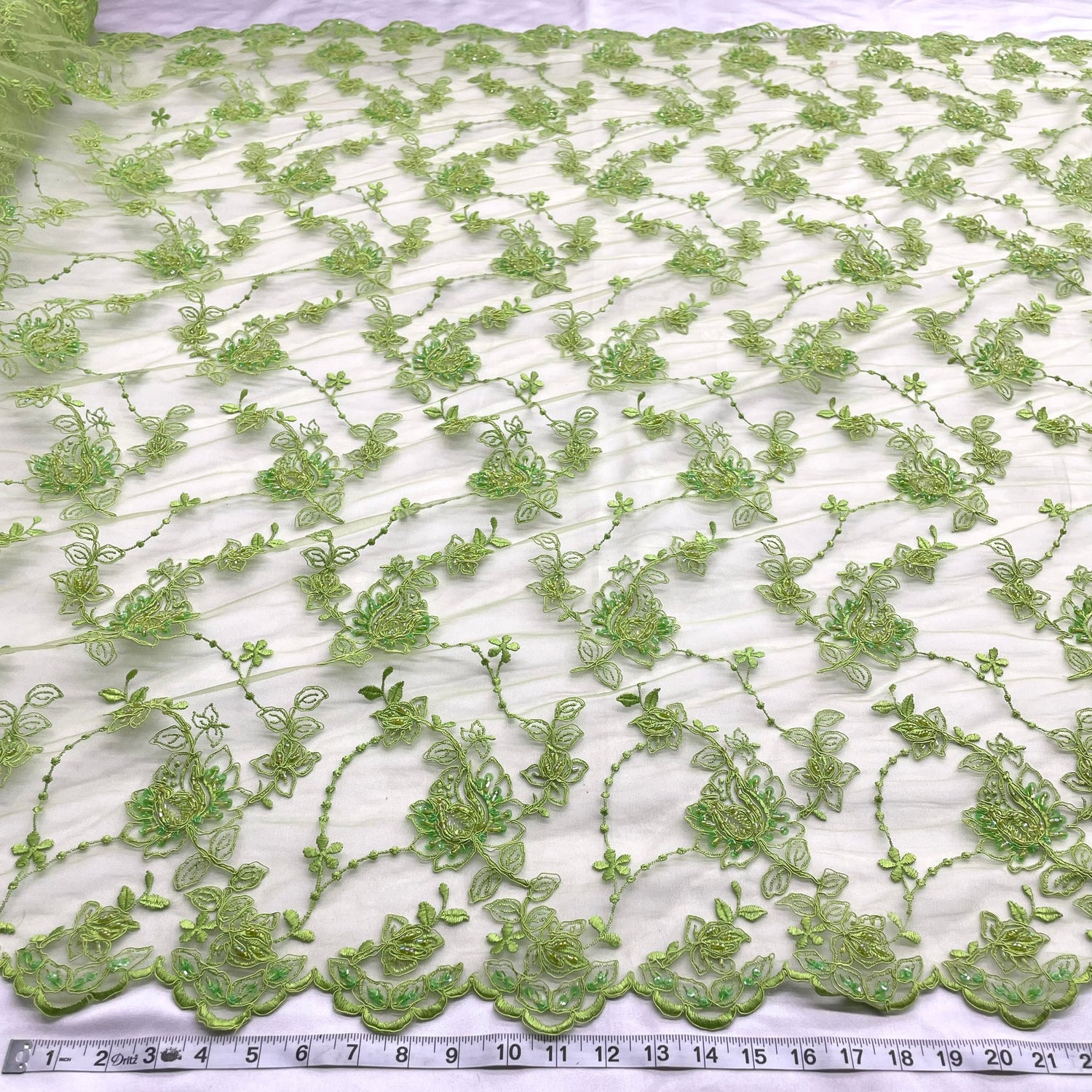 1 Yard Beaded and Corded Bridal Lace Fabric Embroidered on Polyester Net Mesh for Elegant Wedding Gowns – 50"
