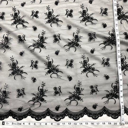 1 Yard Elegant Beaded Lace Fabric Embroidered on Polyester Net Mesh – 54"