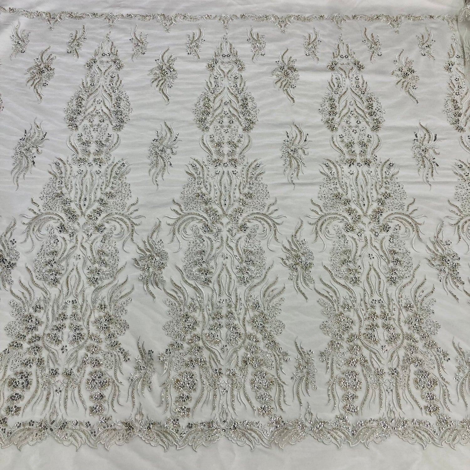 1 Yard Beaded Lace Fabric Embroidered on 100% Polyester Net Mesh