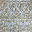 Stand out at any special occasion with this elegant corded bridal lace fabric embroidered on 100% polyester net mesh. Perfect for wedding gowns, evening dresses, quinceañera outfits, and dance costumes, this couture lace features delicate corded embroidery for a refined and sophisticated look. Lightweight yet durable, it drapes beautifully, adding charm and elegance to any creation. Available in multiple colors, this premium lace fabric allows you to design unique and memorable outfits for weddings, parties, or formal events.