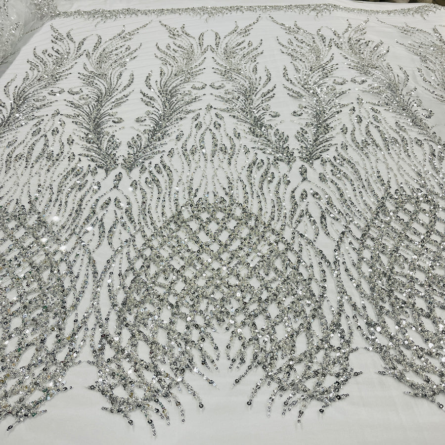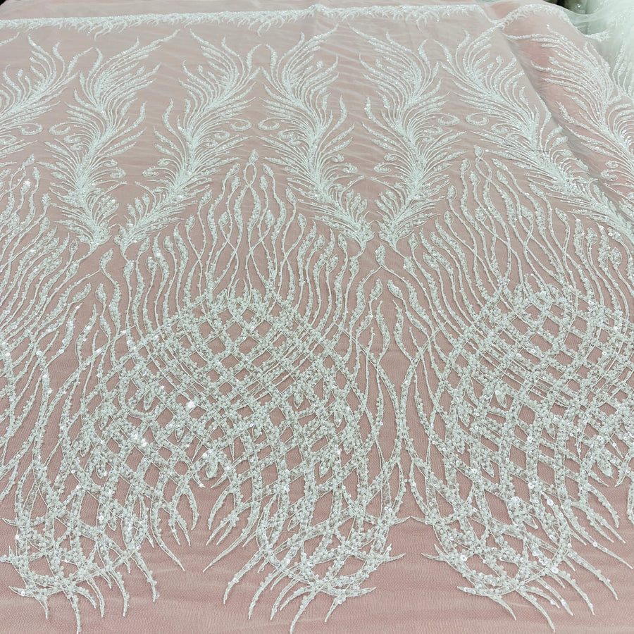 Introducing our spectacular Beaded Lace Fabric Embroidered on 100% Polyester Net Mesh. This exquisite fabric is perfect for adding an air of sophistication and luxury to any special occasion dress. Craft beautiful wedding dresses, evening gowns, dance costumes, Quinceanera dresses and more. The options are endless! Available in four lovely colors, hand-embroidered with decorative beads and sequins that glimmer and sparkle with every turn. The high-end lace fabric has a lightweight, ethereal feel and is perfect for creating luxurious and Couture lace creations such as bridal lace, formal dress lace, and evening dress lace. Embellished with special occasion lace, decorate any ensemble with this exquisite Decorative lace to make it truly sensational!