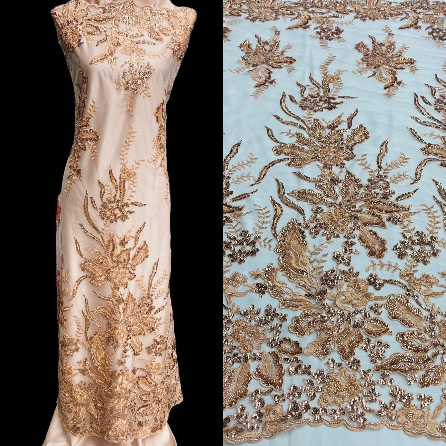 1 Yard Silver Beaded Lace Fabric Embroidered on 100% Polyester Net Mesh 50 Inch Width - Gold is backordered and will ship as soon as it is back in stock.