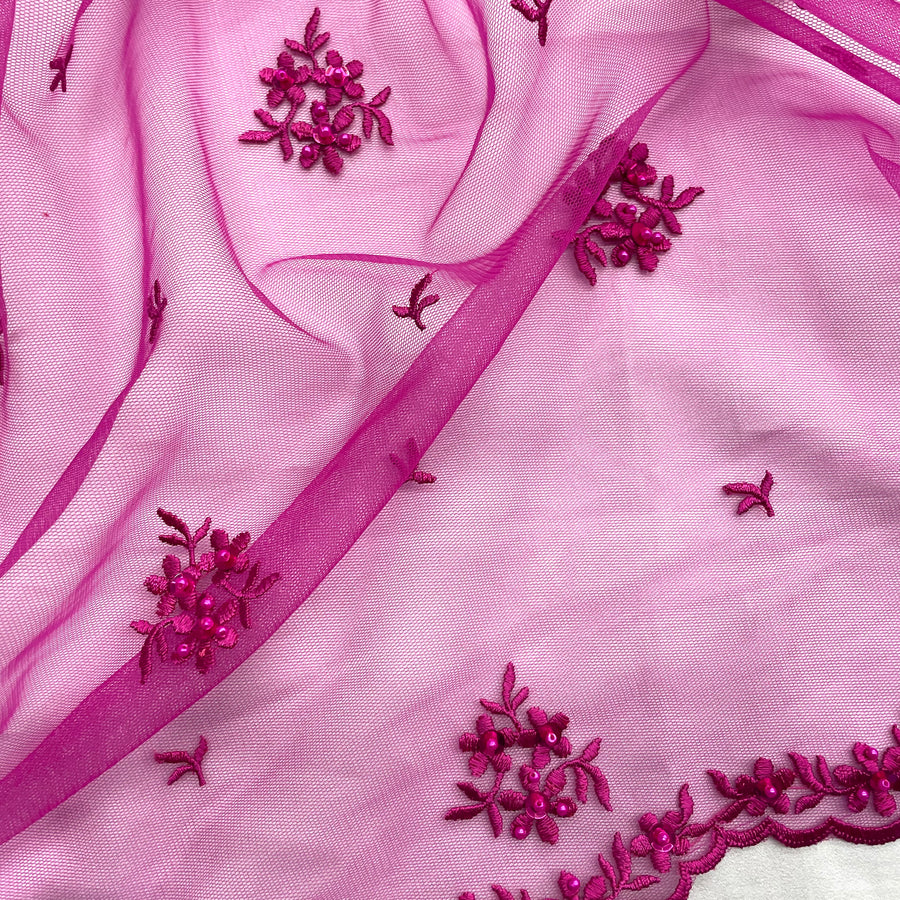 Indulge in pure elegance Fabric Embroidered on 100% Polyester Net Mesh, designed to elevate any couture creation. This luxurious lace features intricate beadwork and embroidery on a soft, durable mesh, adding depth, texture, and shimmer to your garments.