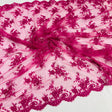 1 Yard - Corded Bridal Lace Fabric Embroidered on 100% Polyester Net Mesh - Ivory with Silver - 56" - Fuchsia is backordered and will ship as soon as it is back in stock.