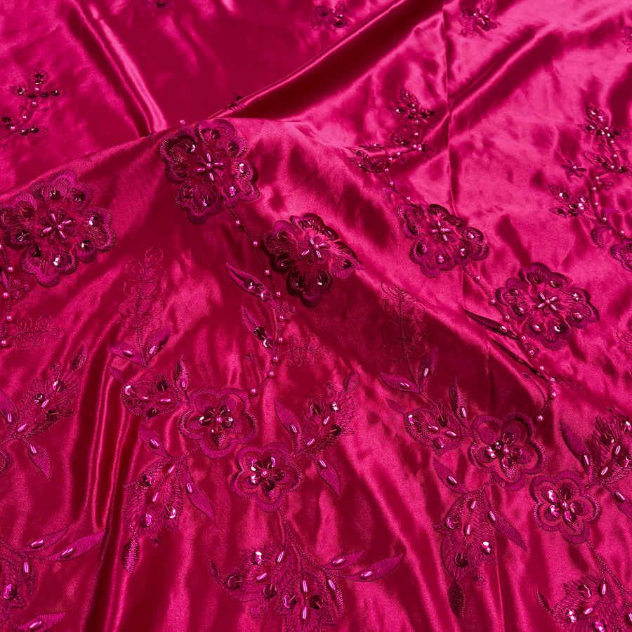 Create a showstopping gown or costume with Lace USA’s Beaded Bridal Lace Fabric, meticulously embroidered on 100% polyester satin. Perfect for bridal gowns, evening dresses, quinceañera dresses, and dance costumes, this luxurious fabric offers intricate floral embroidery with elegant beadwork for a couture-inspired finish.