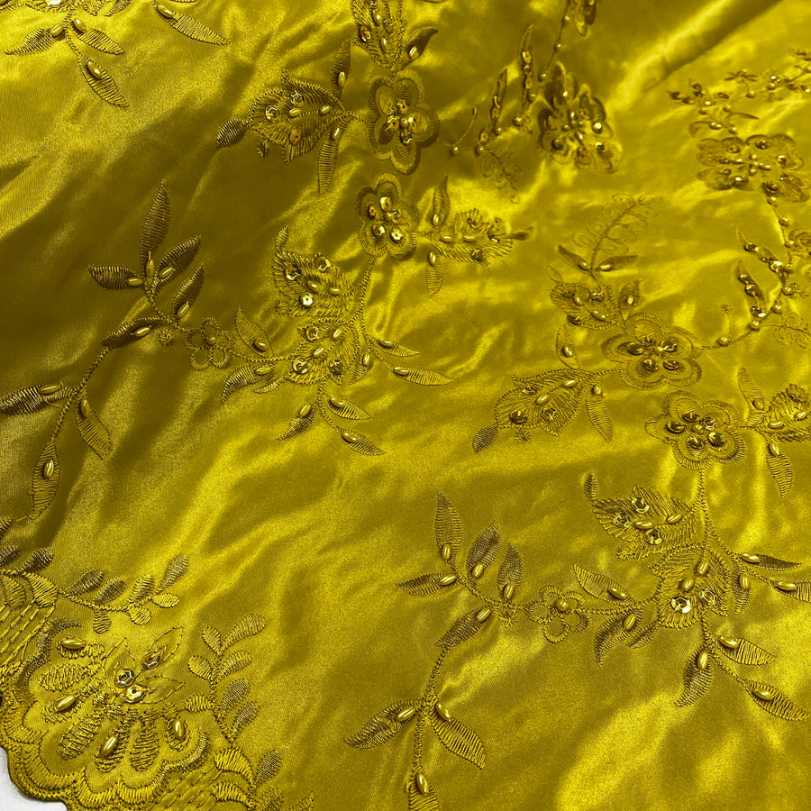 Yard - Beaded Bridal Lace Fabric Embroidered on 100% Polyester Satin - Ivory with Gold - 54"