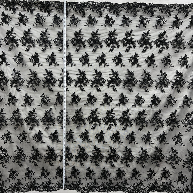 1 Yard - Corded Bridal Lace Fabric Embroidered on 100% Polyester Net Mesh - 53" Wide