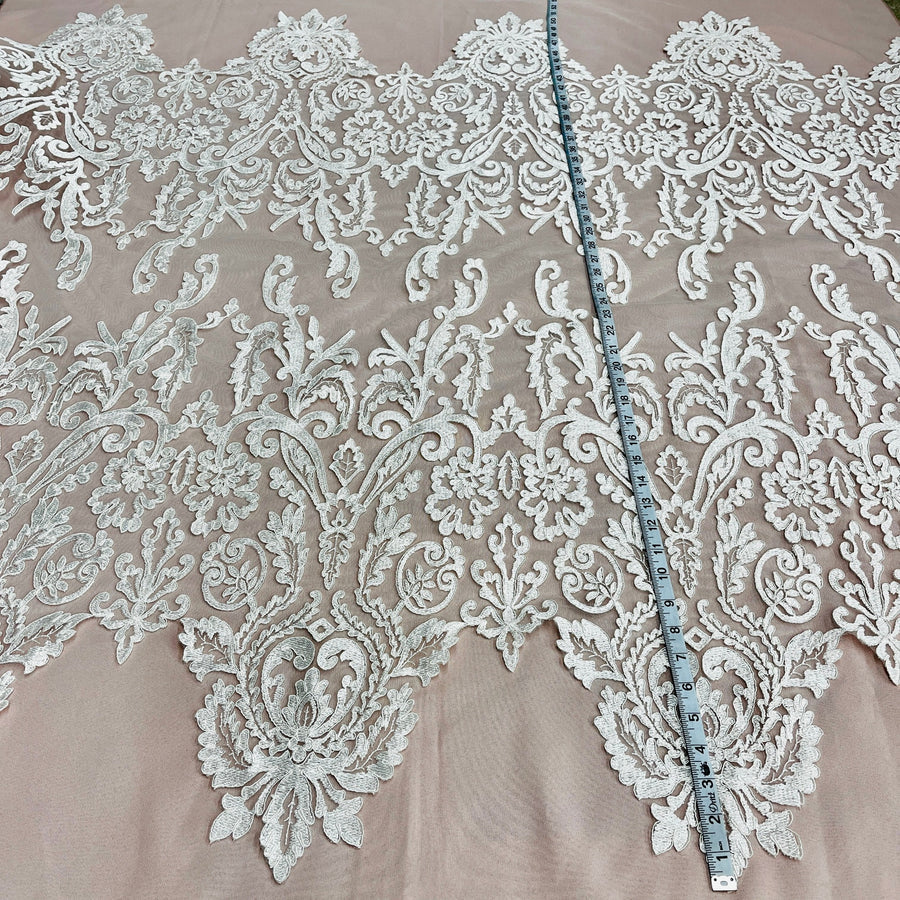 1 Yard Corded Bridal Lace Fabric Embroidered on Polyester Net Mesh