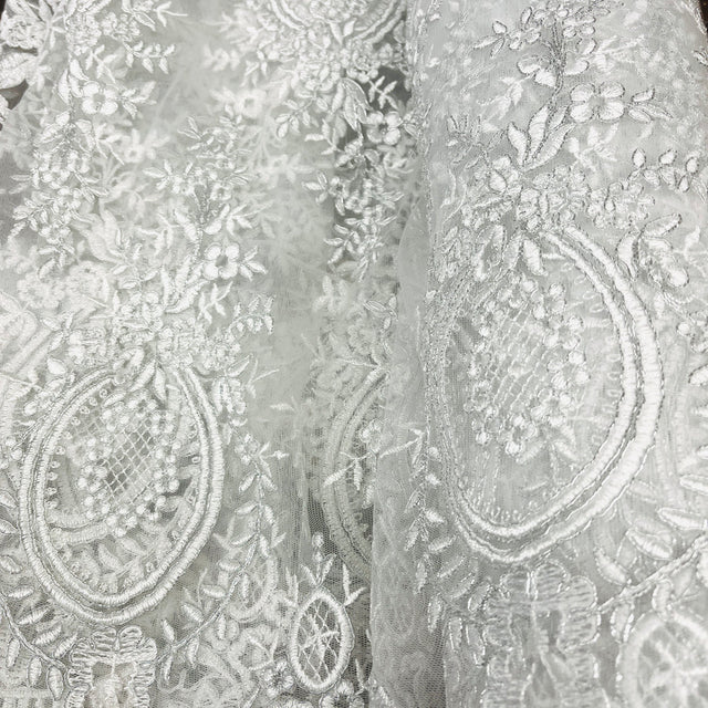 1 Yard Corded Bridal Lace Fabric Embroidered on 100% Polyester Net