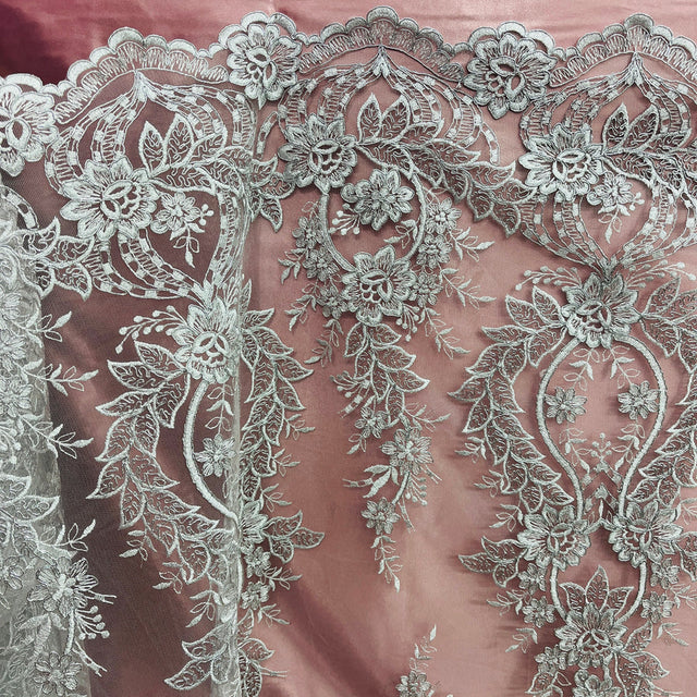 1 Yard Corded Bridal Lace Fabric Embroidered on 100% Polyester Net Mesh