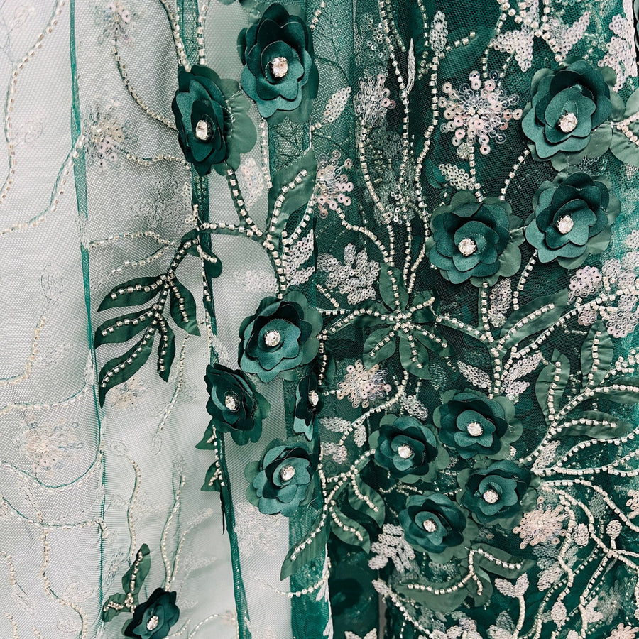 Transform your designs with this exquisite beaded 3D floral lace fabric embroidered on premium 100% polyester net mesh. Featuring beautifully raised floral patterns and intricate beadwork, this fabric adds luxurious depth and texture to any project. Perfect for bridal gowns, evening dresses, quinceañera attire, and dance costumes, it brings a couture-quality touch to every creation. The soft mesh base ensures comfort, flexibility, and easy sewing, making it ideal for both professional designers and passionate crafters.