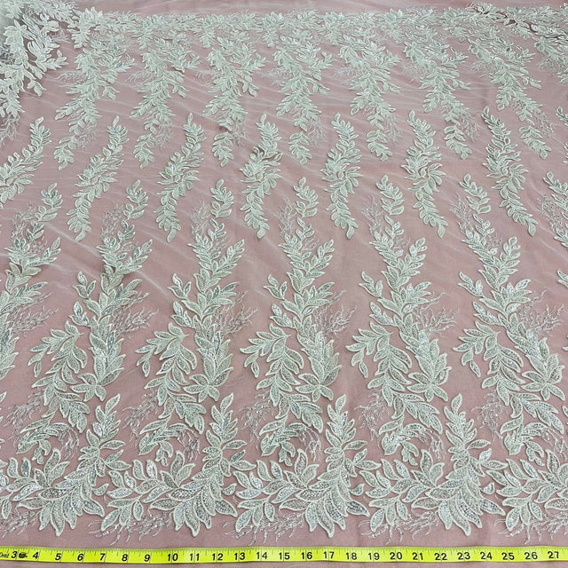 Elevate your couture projects with this Antique Silver Beaded Lace Fabric Embroidered on 100% Polyester Net Mesh from Lace USA. Perfect for wedding gowns, evening dresses, dance costumes, and other special occasion ensembles, this fabric features intricate hand-embroidered beads and sequins that add a sophisticated, luxurious touch. With a generous width of approximately 54 inches, it allows for seamless, elegant designs that stand out. Available in three stunning colors, this high-quality lace ensures your creations exude timeless beauty and elegance.