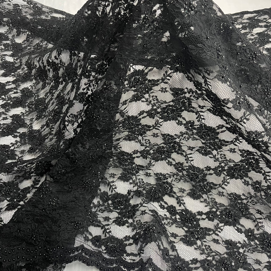 1 Yard Premium Beaded and Corded Lace Fabric Embroidered on Polyester Net Mesh