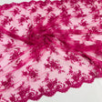 1 Yard Corded Bridal Lace Fabric Embroidered on 100 Percent Polyester Net Mesh White 56 inch Width - Fuchsia is backordered and will ship as soon as it is back in stock.