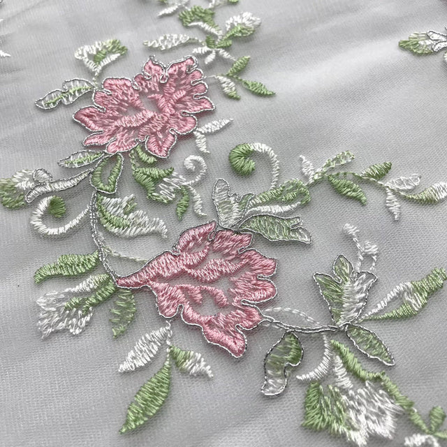 1 Yard Premium Corded Embroidered Bridal Lace Fabric for Elegant Dresses White - Sage/Pink / 53"Wide is backordered and will ship as soon as it is back in stock.
