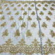 1 Yard Glamorous Beaded and Corded Lace Fabric Embroidered on 100% Polyester Net Mesh White - Gold / 56"Wide is backordered and will ship as soon as it is back in stock.
