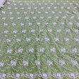 1 Yard Elegant Beaded and Corded Bridal Lace Fabric Embroidered on 100% Polyester Net Mesh White