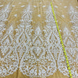 1 Yard Luxurious Beaded Lace Fabric Embroidered on Polyester Net Mesh White and Ivory