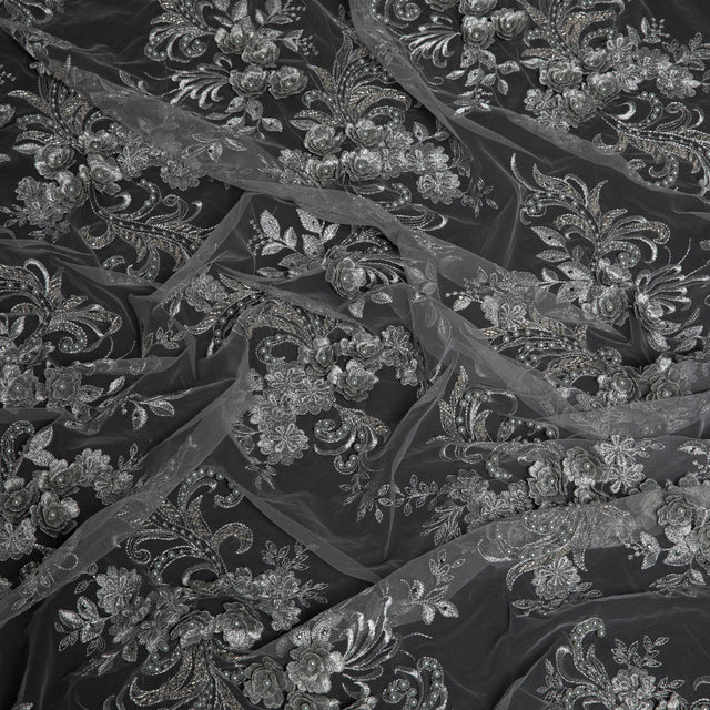 1 Yard Tulle Lace Fabric Embroidered with Applique & Beads with 3D Floral Pattern 100% Polyester 50/52" Wide - Dark Grey is backordered and will ship as soon as it is back in stock.