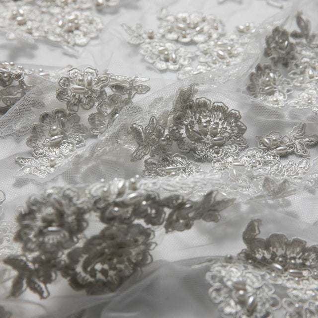 1 Yard Tulle Lace Fabric Embroidered with Beads and Floral Design 52/54" Wide - White is backordered and will ship as soon as it is back in stock.