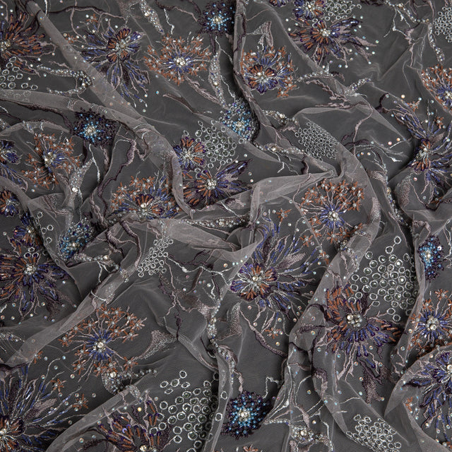 1 Yard Embroidered Beaded Lace Fabric with Sequins & Floral Pattern 50/52" Wide 100% Polyester - Dark Gray/Purple is backordered and will ship as soon as it is back in stock.