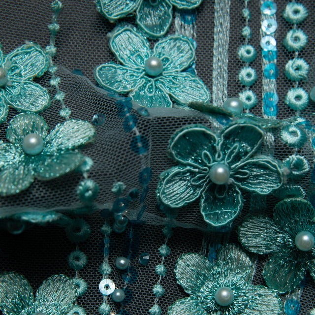 1 Yard P Soft Tulle Lace Fabric Sequins Applique Beautiful 3D Floral Design 52/54" Wide