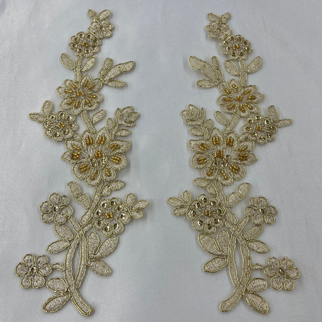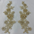 1 Pair Beaded & Corded Floral Lace Applique 10" x 2" Each Side