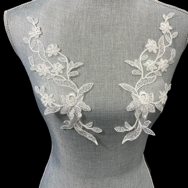 1 Pair Corded Floral Applique for Bridal, Christening & Flower Girl Dresses 11" x 3" Each Side
