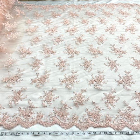 1 Yard Corded Bridal Lace Fabric Embroidered 100 Percent Polyester Net Mesh 50 inch Width