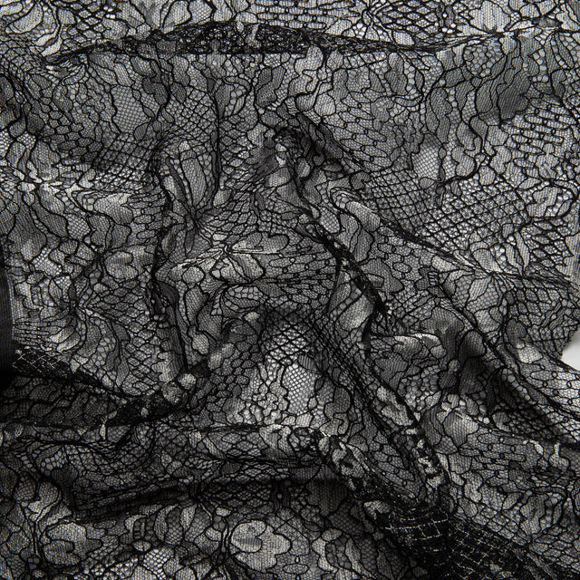 Elevate your designs with the timeless elegance of our Chantilly lace fabric. This exquisite fabric, renowned for its delicate nature and intricate patterns, features a stunning floral pattern meticulously embroidered with cord. The 56-inch width offers ample material to bring your creative visions to life.
