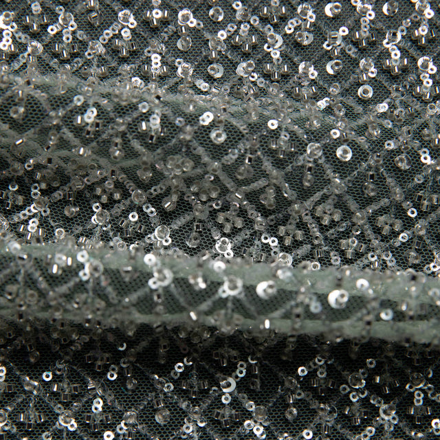 1 Yard Embroidered Tulle Lace Fabric with Sequins, 52" Wide - Sage is backordered and will ship as soon as it is back in stock.