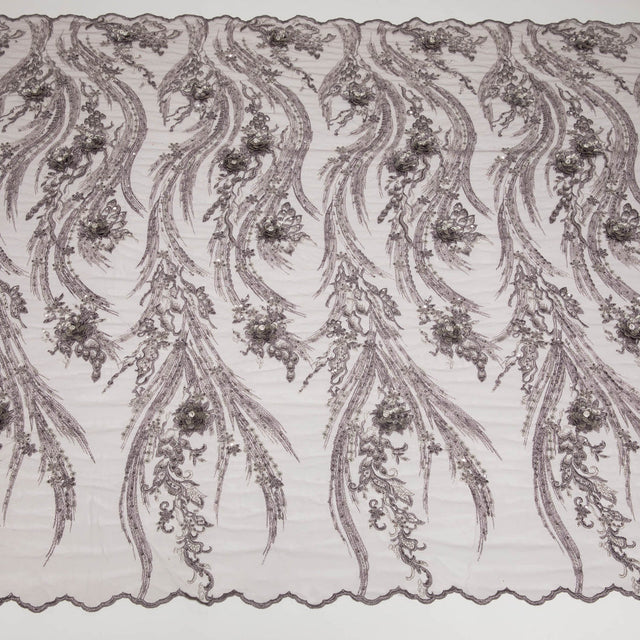 This exquisite tulle lace fabric features an elegant 3D floral embroidered pattern, creating a luxurious, textured finish perfect for standout designs. The delicate floral motifs and dimensional detail add romance and sophistication, making this fabric ideal for special occasions and couture projects. At 52 inches wide, it provides excellent versatility for apparel and décor.