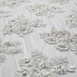 1 Yard Tulle Lace Fabric Embroidered with Beads and Floral Design, 52/54" Wide