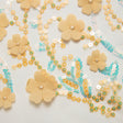 - Texture: Sheer woven base with raised 3D floral embroidery and appliques
