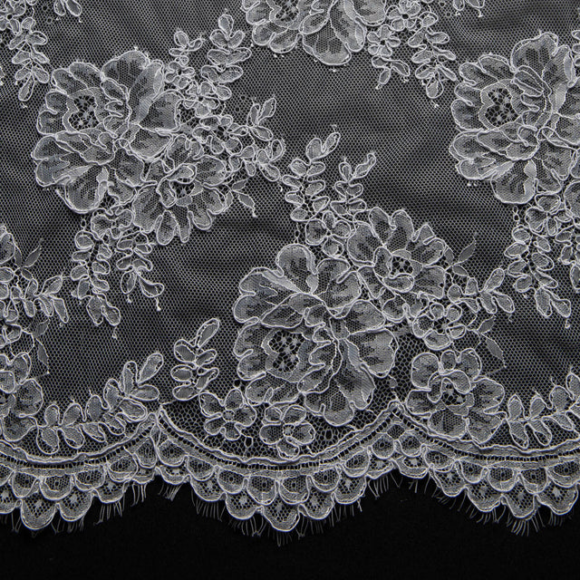 1 Yard Elegant Corded Chantilly Lace Fabric with Embroidered Floral Design, 54" Wide