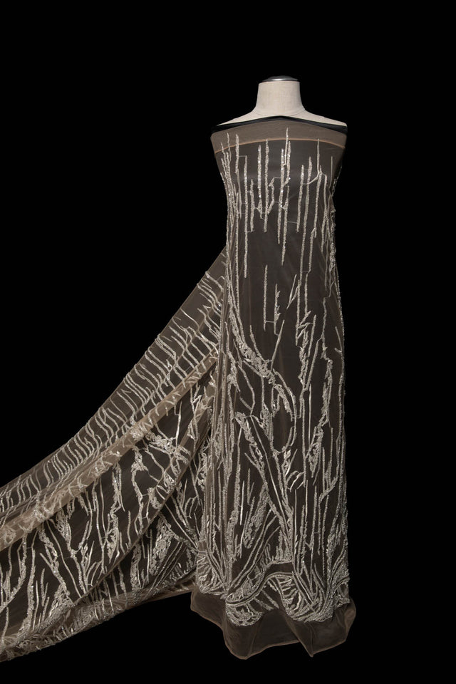 Upgrade your creations with this exquisite soft tulle lace fabric featuring intricate embroidery and shimmering sequins. Designed for elegance and versatility, this 52-inch-wide fabric is perfect for gowns, bridal wear, evening dresses, home décor, and more. Its lightweight drape and delicate texture bring sophistication to any sewing or crafting project.