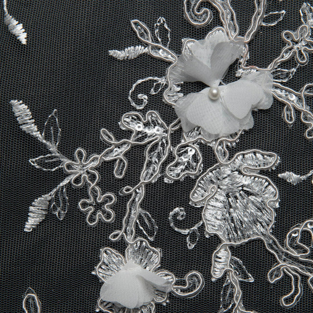 1 Yard Embroidered Tulle Lace Fabric with 3D Floral Applique 52" Wide Costume Textile