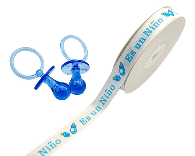 Celebrate a baby boy with this grosgrain ribbon featuring "Es un Niño" (It's a Boy) print in Spanish.