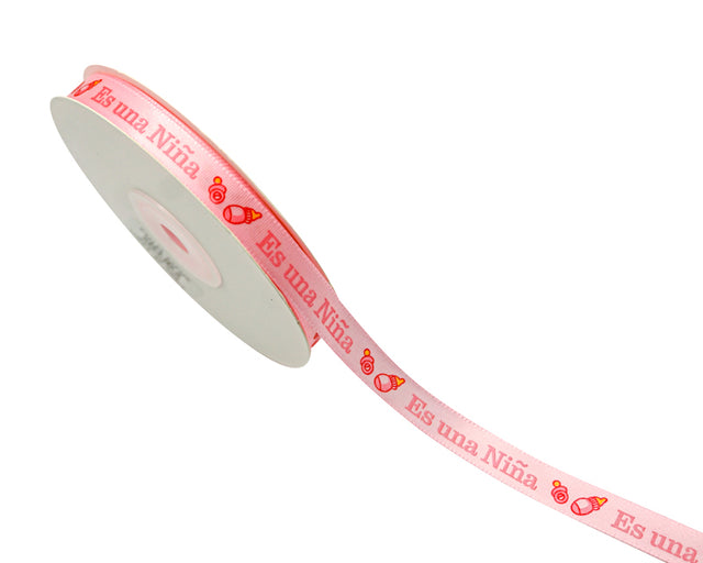3/8"x 25 yards Es un Niña Baby Shower Spanish Single Face Satin Gift Ribbon