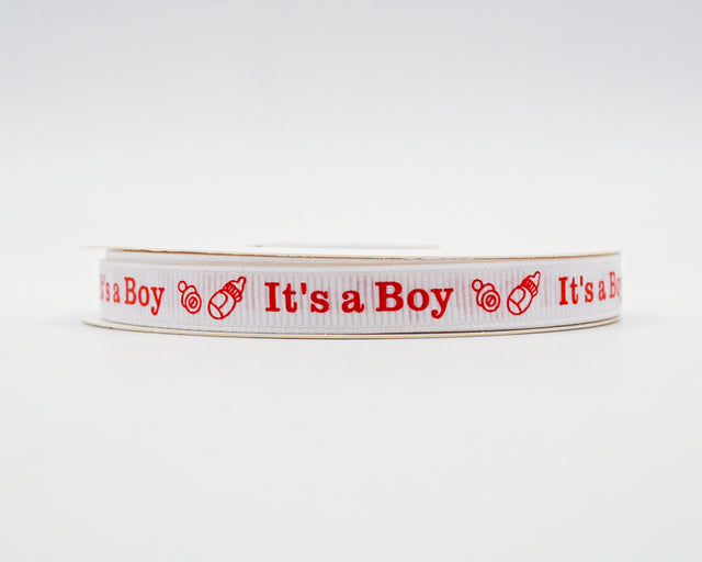 3/8"x 25 yards Red It's a Boy Baby Shower Printed Grosgrain Gift Ribbon