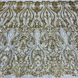 1 Yard Gold Beaded Lace Fabric Embroidered on Polyester Net Mesh 54 Inch Width