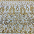 1 Yard Gold Beaded Lace Fabric Embroidered on 100 Percent Polyester Net Mesh 52 Inch Width