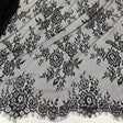 Elevate your couture and special occasion designs with this Chantilly embroidered lace fabric featuring a delicate eyelash scallop. Crafted from 100% polyester, this luxurious lace is ideal for wedding gowns, evening dresses, and dance costumes. Its intricate embroidery and elegant detailing provide timeless sophistication and charm, making it perfect for couture projects, decorative accents, or standout garments. Measuring 58" wide and sold in 3-yard pieces, it offers ample material for your creative visions.
