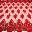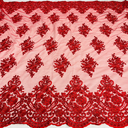 1 Yard Regal Beaded and Corded Lace Fabric with Scallops Embroidered on Polyester Net Mesh - Red is backordered and will ship as soon as it is back in stock.