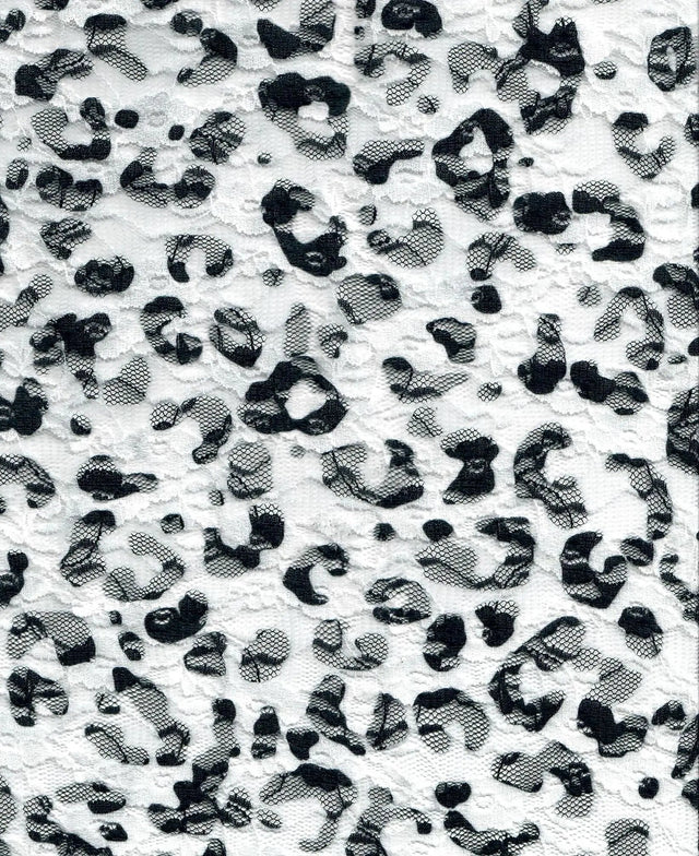 Leopard Lace Print Fabric 92% Polyester 8% Spandex Stretch Lightweight 56/58 Inches Wide - BLACK is backordered and will ship as soon as it is back in stock.