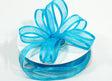 A bright turquoise organza ribbon with satin edges, perfect for adding a pop of color to your gifts and event decorations.