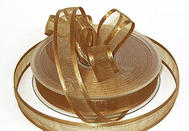 A luxurious old gold organza ribbon with satin edges, adding vintage charm and sophistication to any gift or décor.