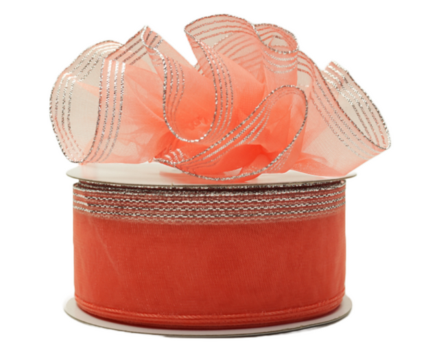 1.5"x25 yards Coral/Silver Organza Pull Bows Gift Ribbon